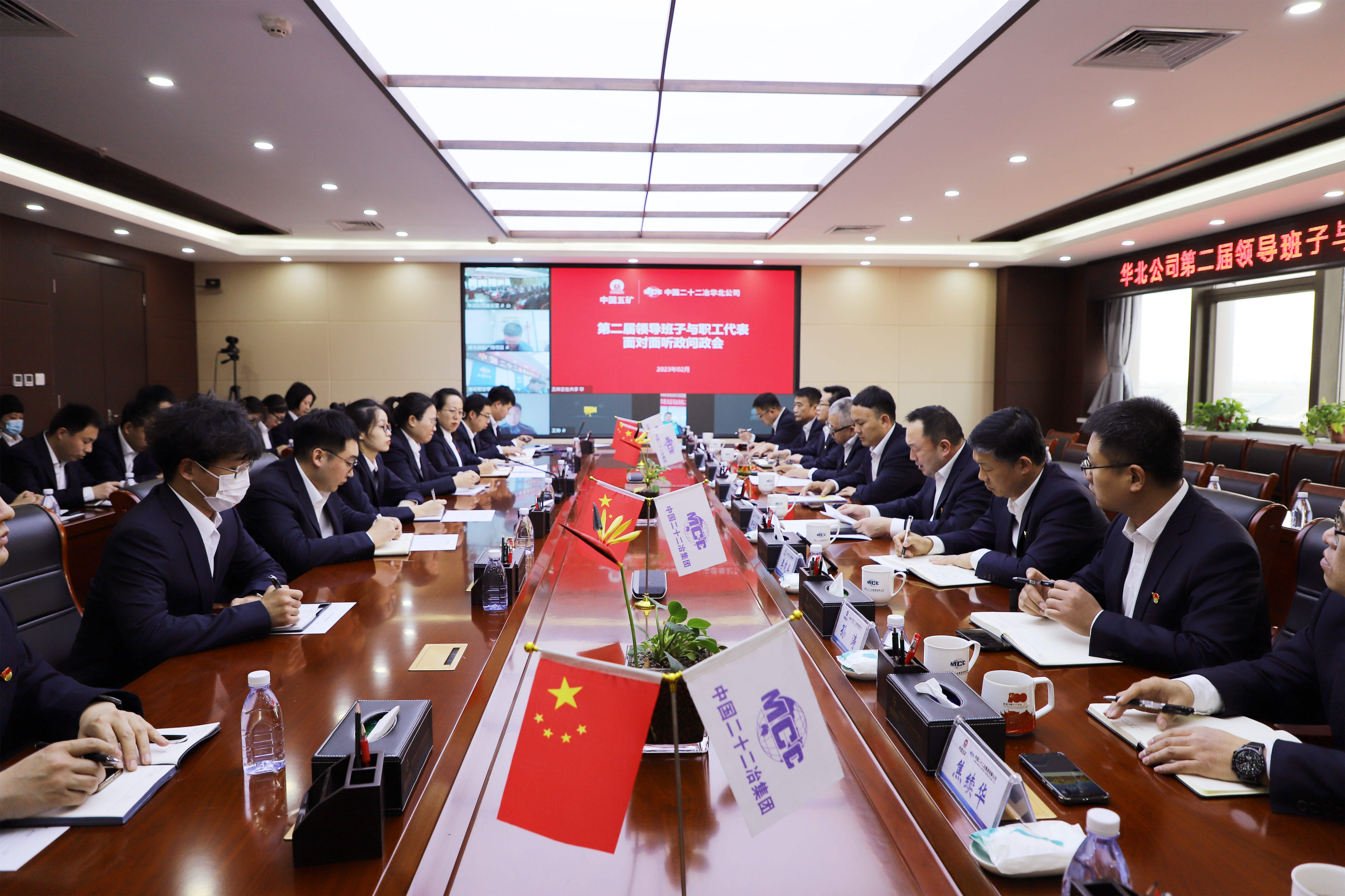 2月2日,華北公司召開第二屆領(lǐng)導(dǎo)班子成員與職工代表面對(duì)面聽政問政會(huì)。公司總經(jīng)理、黨委副書記杜小龍代表領(lǐng)導(dǎo)班子通報(bào)2022年工作目標(biāo)任務(wù)完成情況及取得成效,黨委副書記(主持工作)、紀(jì)委書記、代理工會(huì)主席、副總經(jīng)理田世英主持會(huì)議。