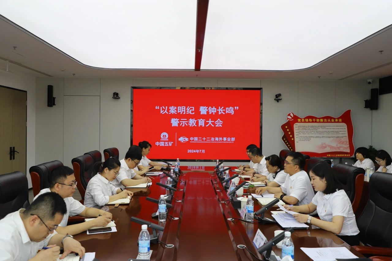 會(huì)上,海外事業(yè)部紀(jì)檢科科長楊丹傳達(dá)中國五礦典型案例;與會(huì)人員集中觀看了警示教育片《持續(xù)發(fā)力 縱深推進(jìn)》之《強(qiáng)化正風(fēng)肅紀(jì)》;黨委書記、紀(jì)委書記、代理工會(huì)主席、副總經(jīng)理孟秀蓮對(duì)黨員干部進(jìn)行集體廉潔談話;與會(huì)人員進(jìn)行了“清廉承諾我擔(dān)當(dāng)”集體簽名;事業(yè)部主要領(lǐng)導(dǎo)發(fā)放《海外事業(yè)部警示教育讀本》。