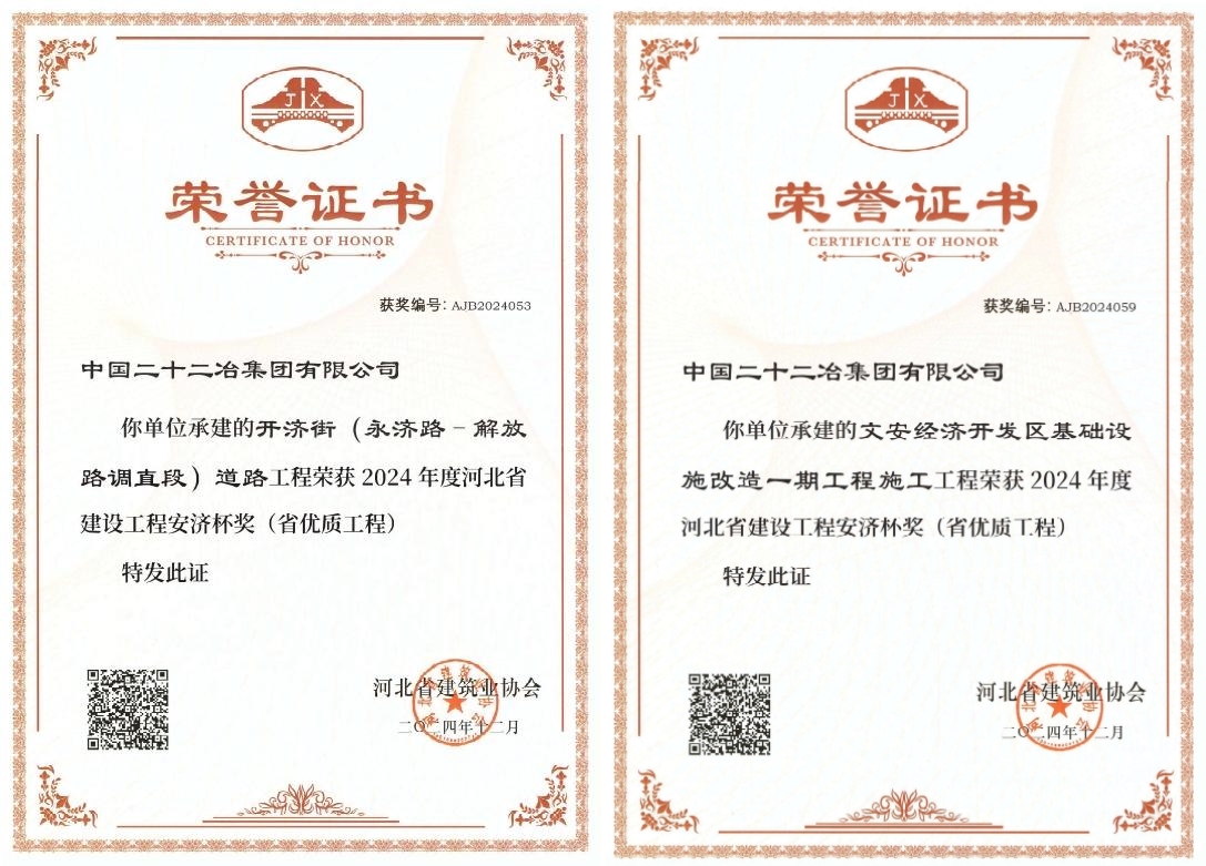 近日,河北省建筑業(yè)協(xié)會(huì)公布2024年度河北省建設(shè)工程安濟(jì)杯獎(jiǎng)(省優(yōu)質(zhì)工程)獲獎(jiǎng)工程名單。路橋公司承建的滄州市政項(xiàng)目開濟(jì)街道路工程、文安經(jīng)濟(jì)開發(fā)區(qū)基礎(chǔ)設(shè)施改造一期工程獲此殊榮。