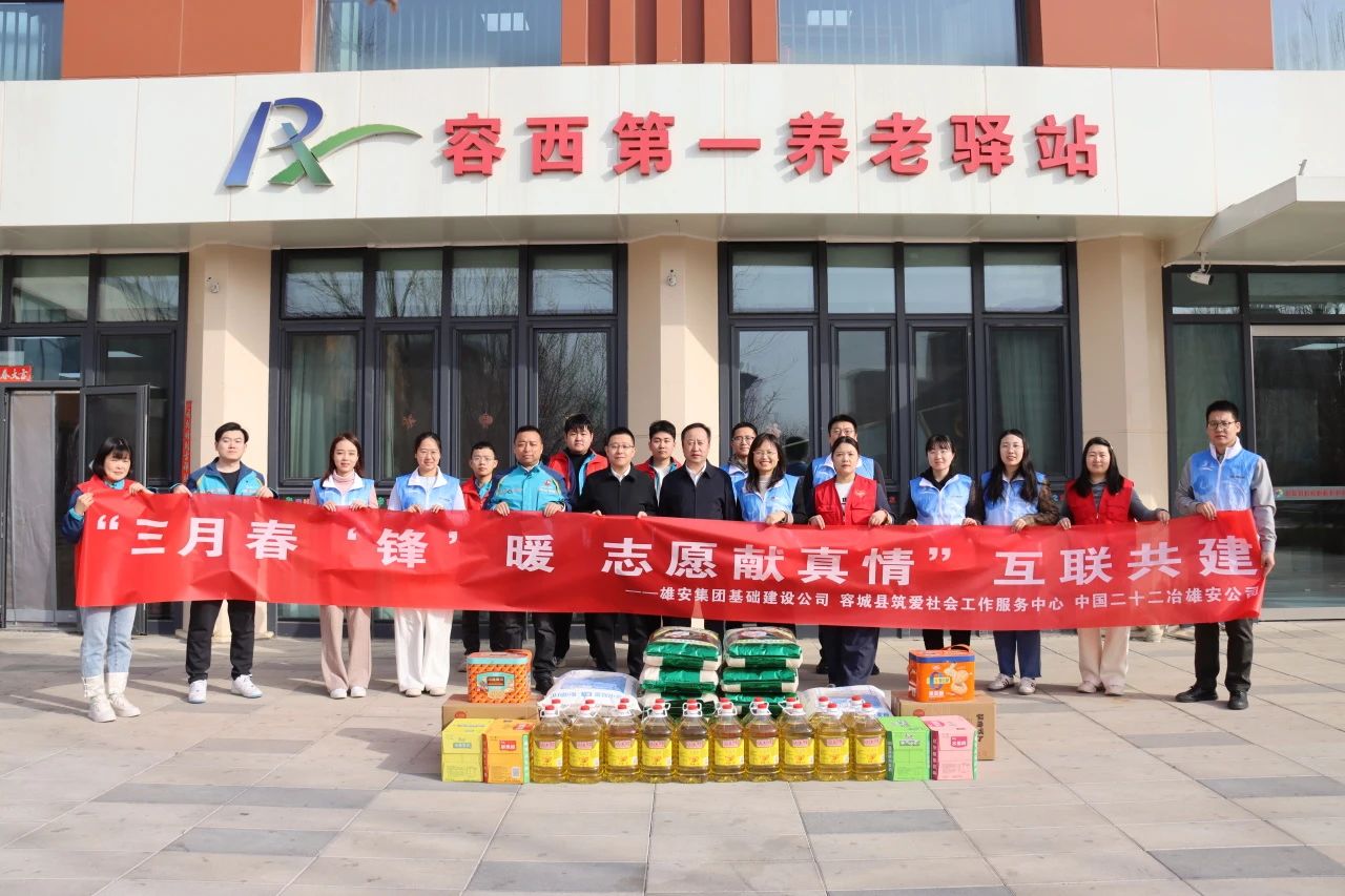 雄安公司黨委、團(tuán)總支聯(lián)合中國雄安集團(tuán)基礎(chǔ)建設(shè)公司、容城縣筑愛社會(huì)工作服務(wù)中心,在容西第一養(yǎng)老驛站共同舉辦了“三月春‘鋒’暖 志愿獻(xiàn)真情”聯(lián)建活動(dòng)。此次活動(dòng)以基層黨組織、團(tuán)組織聯(lián)建為紐帶,進(jìn)一步深化志愿服務(wù)的實(shí)踐內(nèi)涵,傳遞社會(huì)溫暖。