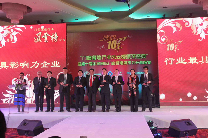 2012年11月23日,由中國建筑金屬結構協(xié)會主辦的“感恩十年——門窗幕墻行業(yè)風云榜評選”頒獎盛典在北京舉行。經(jīng)過2個月的激烈角逐,我公司以絕對優(yōu)勢高居加工設備類榜首,榮獲一呼百應大獎——最具影響力企業(yè)獎。