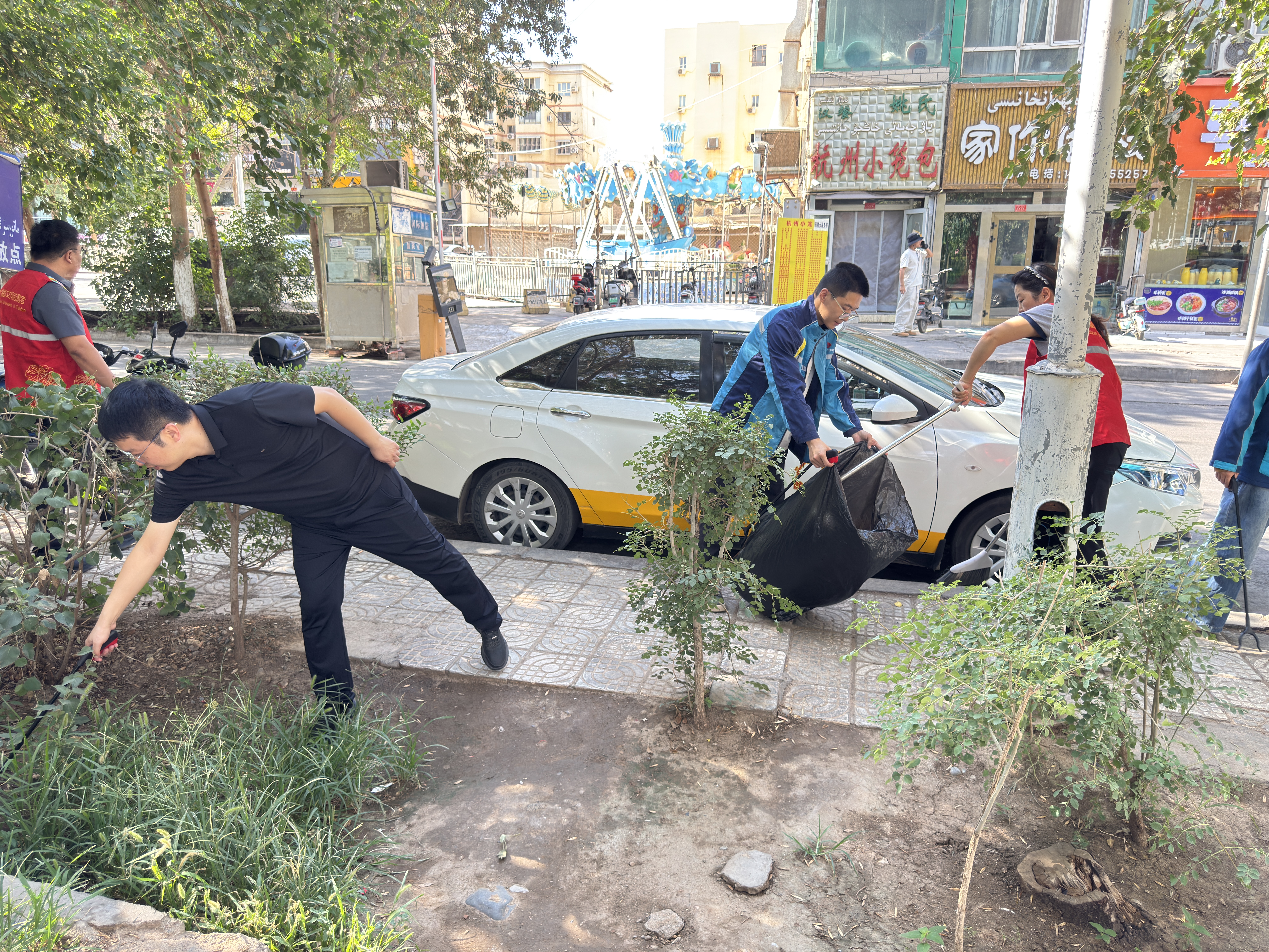 活動(dòng)中,全體職工分工協(xié)作、默契配合,手持掃帚、垃圾鉗等清潔工具,對項(xiàng)目周邊綠化帶及主要通行道路展開了全面清掃。一部分人細(xì)致清掃地面落葉與雜物,一部分人認(rèn)真擦拭宣傳欄、扶手等公共設(shè)施,還有專人負(fù)責(zé)收集和清運(yùn)積存垃圾,并對平日易忽略的衛(wèi)生死角進(jìn)行徹底清理?,F(xiàn)場氣氛熱烈,忙碌中不失條理,高溫下更顯擔(dān)當(dāng)。