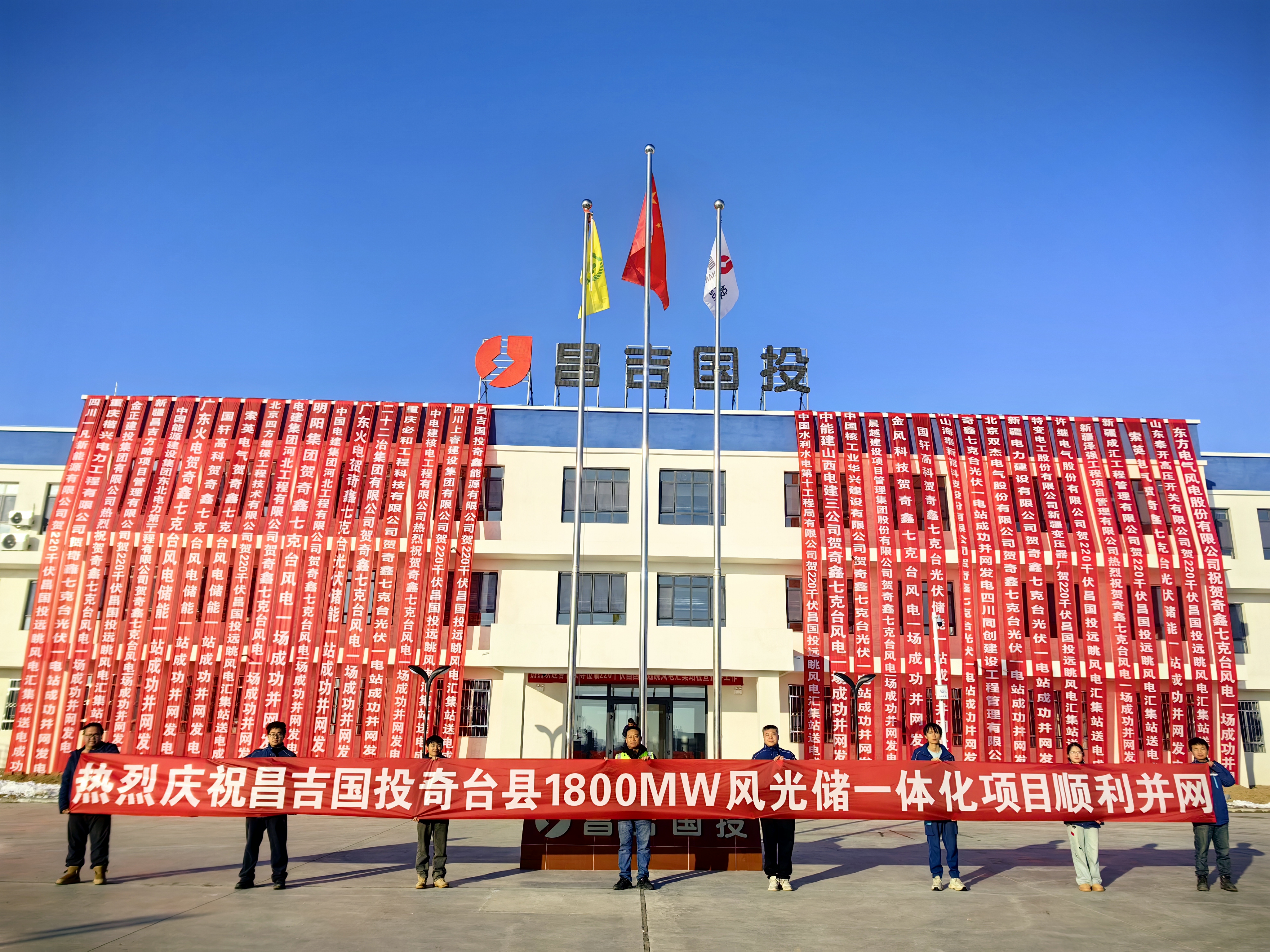 12月26日,由新疆公司承建的國投奇臺縣180萬千瓦風光氫儲一體化項目六標段20萬千瓦風電場基礎(chǔ)及安裝工程,首條線路順利并網(wǎng)。
