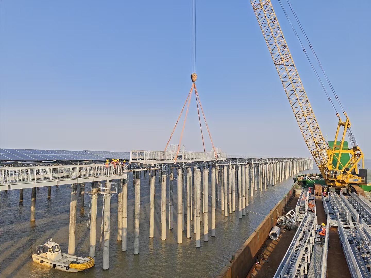 該項(xiàng)目位于江蘇省連云港市連云區(qū),項(xiàng)目建設(shè)規(guī)模為261.27MW海上光伏項(xiàng)目,建設(shè)內(nèi)容包含施工準(zhǔn)備、管樁等材料采購(gòu)與施工,電氣安裝調(diào)試等。